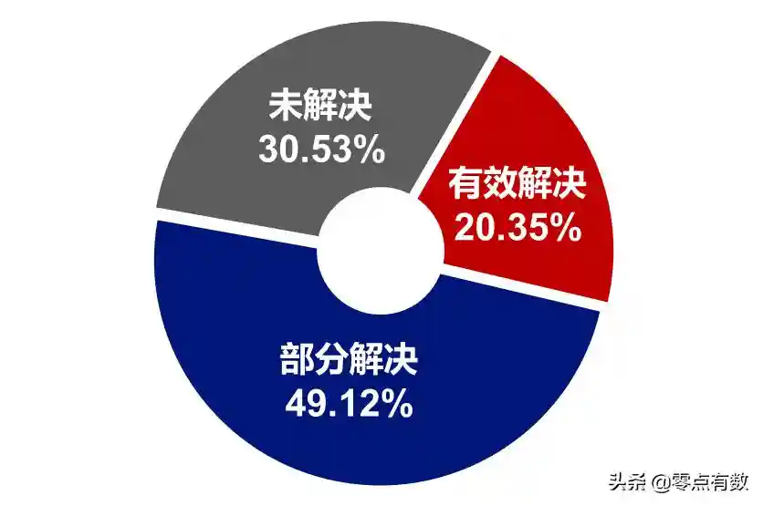 测评结果显示,有20.35%的政务热线电话能够有效解决问题,有49.12%的政务热线电话能够通过提供相关方联系方式等途径部分解决问题,仍有30.53%的政务热线电话未能解决问题。