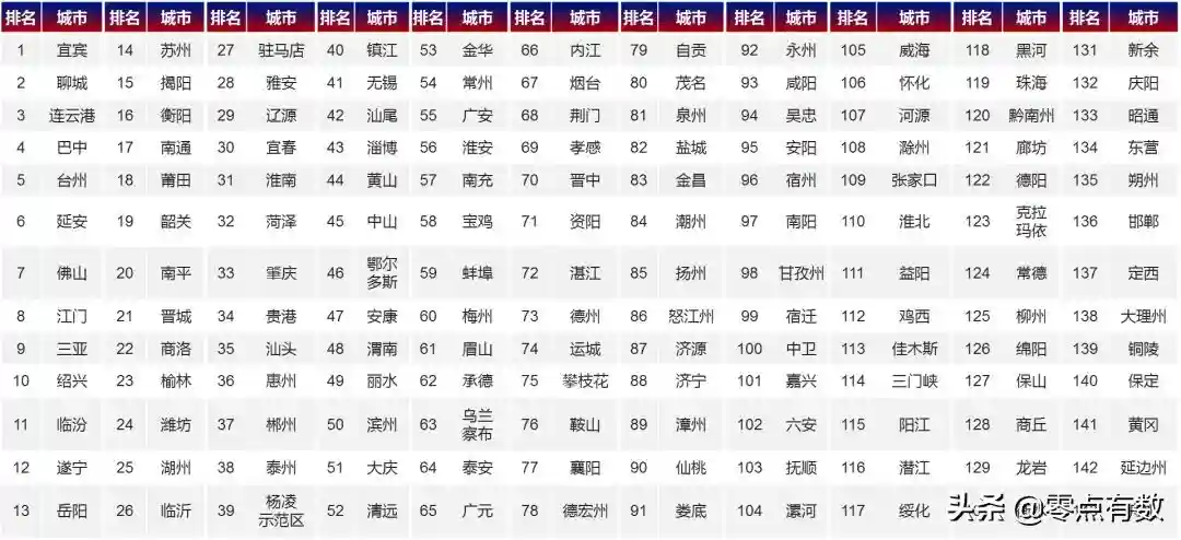 普通地级市政务热线服务总分前十名分别为宜宾、聊城、连云港、巴中、台州、延安、佛山、江门、三亚、绍兴,得分排名前十的城市和排名后十的城市得分均值相差28.93分,得分差距明显。