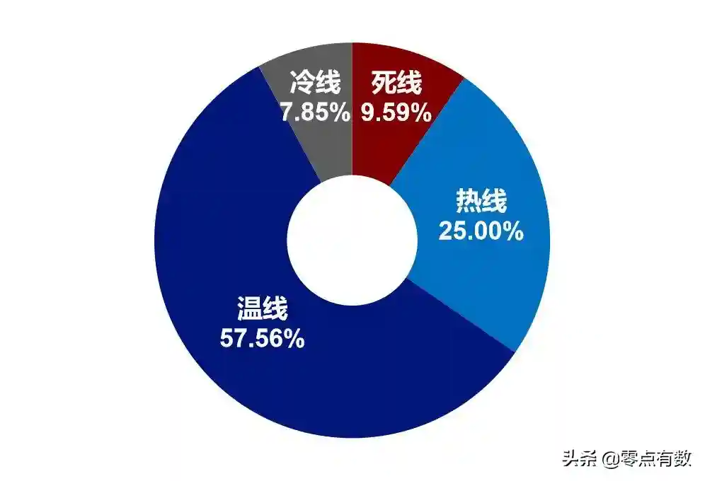 2025年全国政务热线接通情况,“死线”(接通率0%)总数量为33条,占比9.59%,较上一年度减少20条;“热线”(接通率大于等于95%)数量为86条,占比25.00%,较上一年度增加32条;“温线”(接通率大于等于30%且小于95%)数量为198条,占比57.56%,与上一年度基本持平;“冷线”(接通率大于0%且小于30%)数量为27条,占比7.85%。