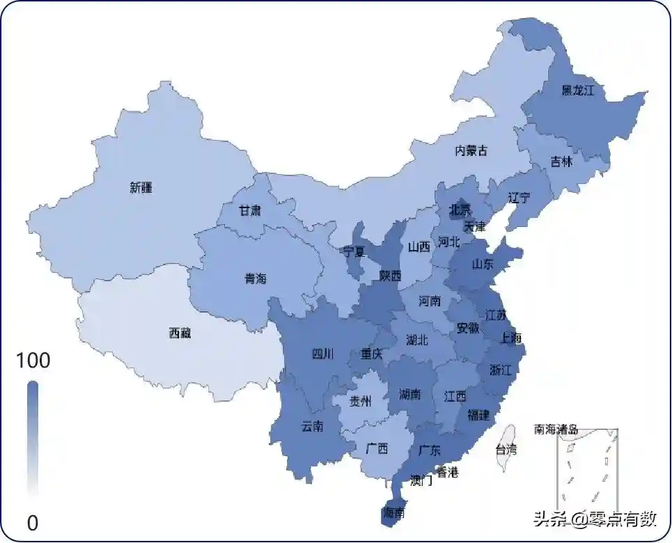 全国31省(市)政务热线服务质量得分(颜色越深得分越高)