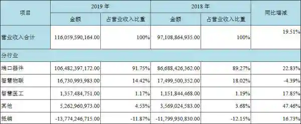 2025年,端口器件业务板块仍然占据其主要地位,营收占比达91.75%,同比增长22.83%;智慧物联板块营收占比为14.42%,同比下降4.39%;智慧医工板块占比为1.17%,同比增长17.85%。